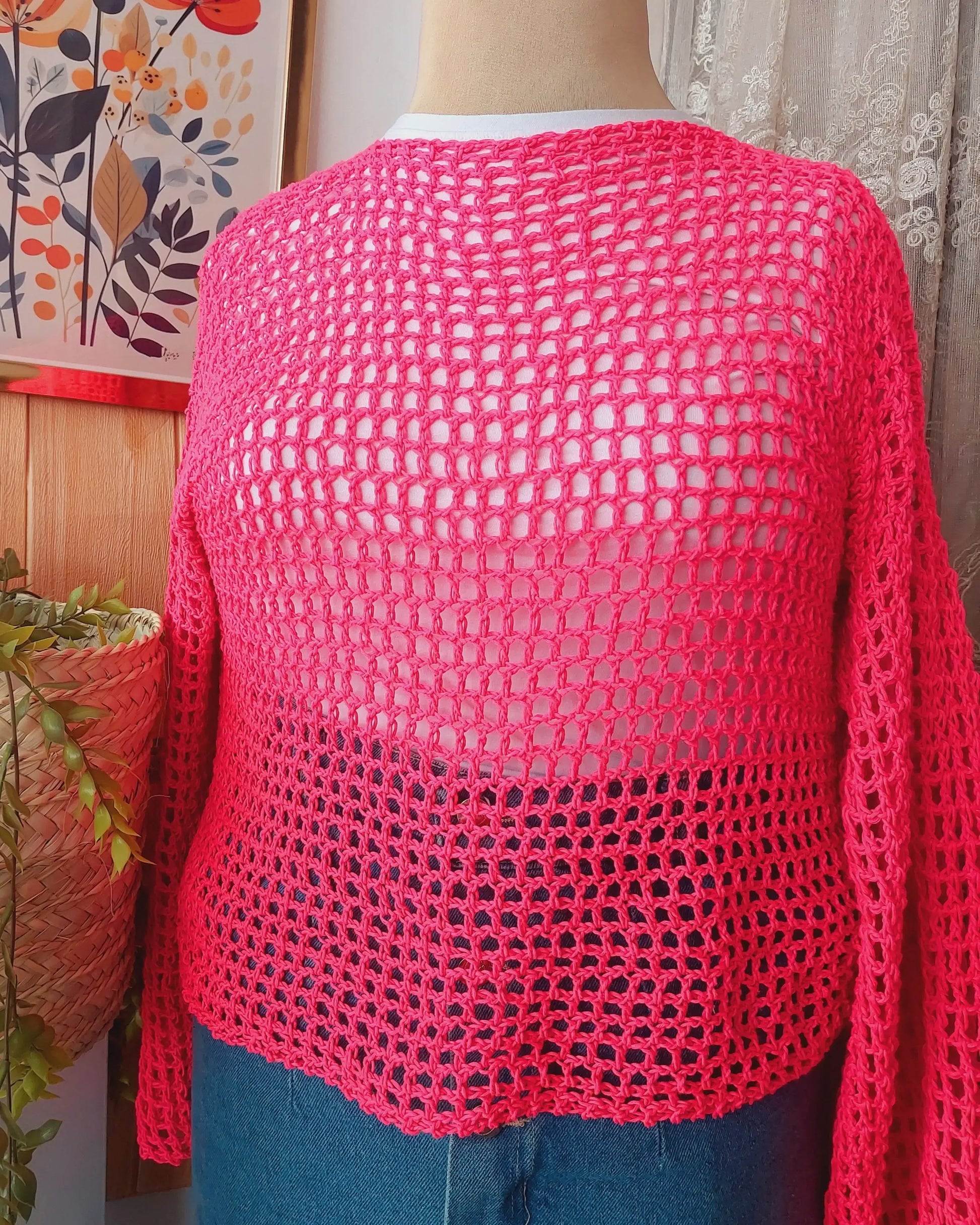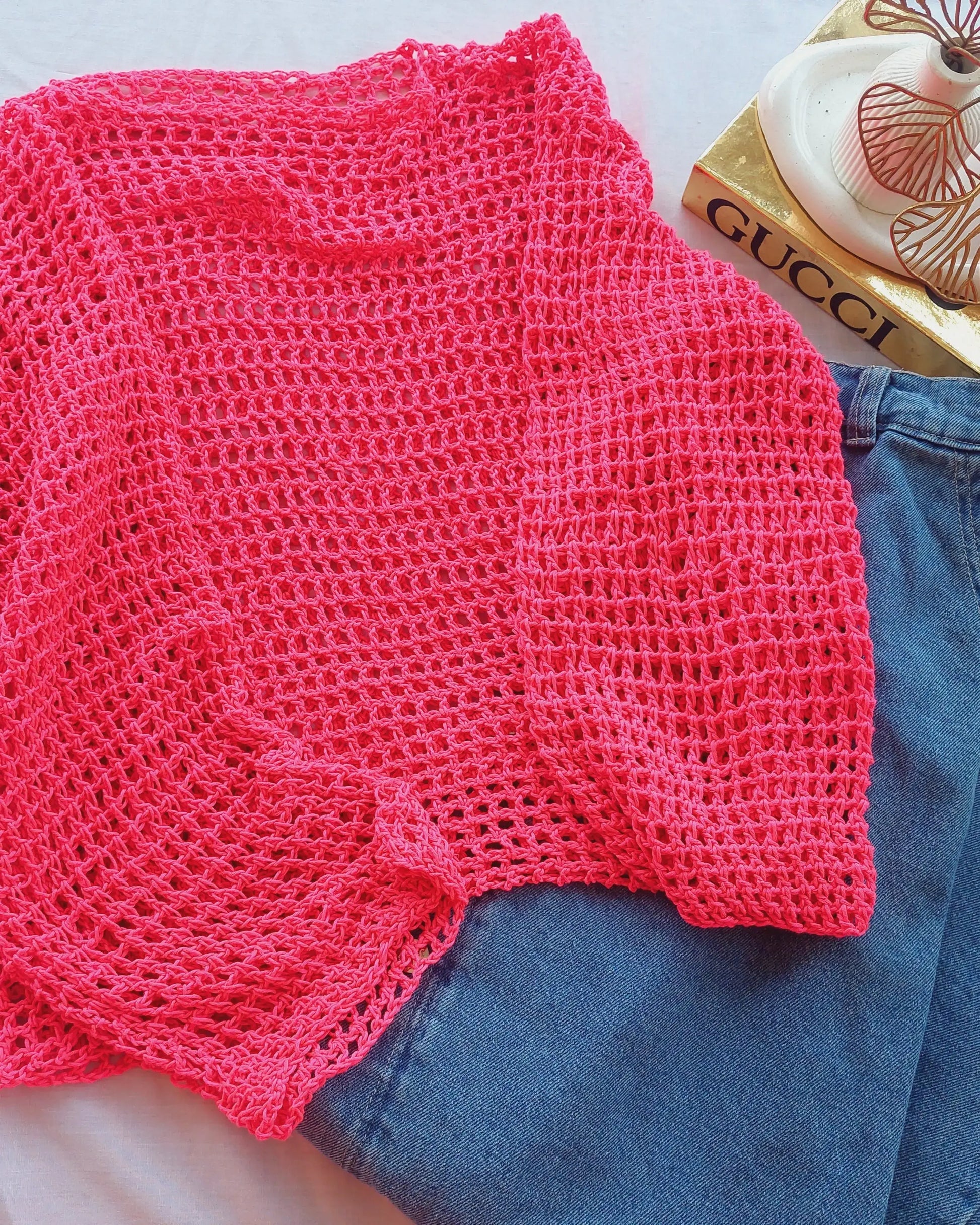بلوزة كروشيه يدوي ... ستايل صيفي و مبهج ، بلون يليق على أي طقم