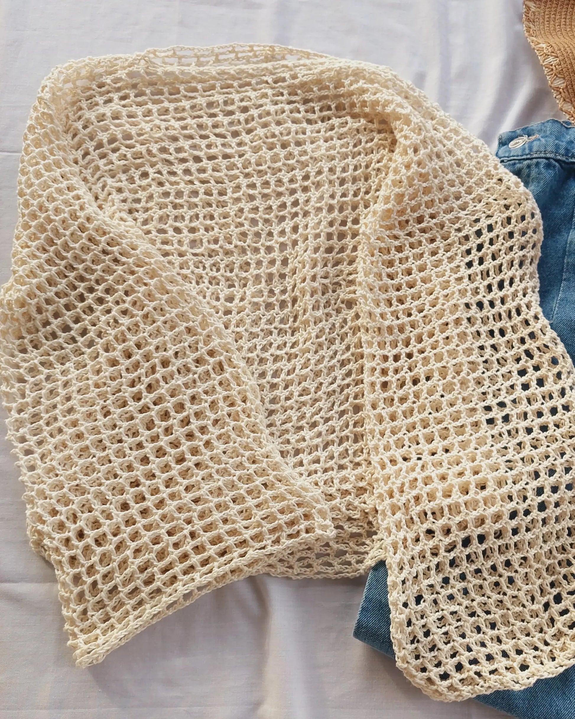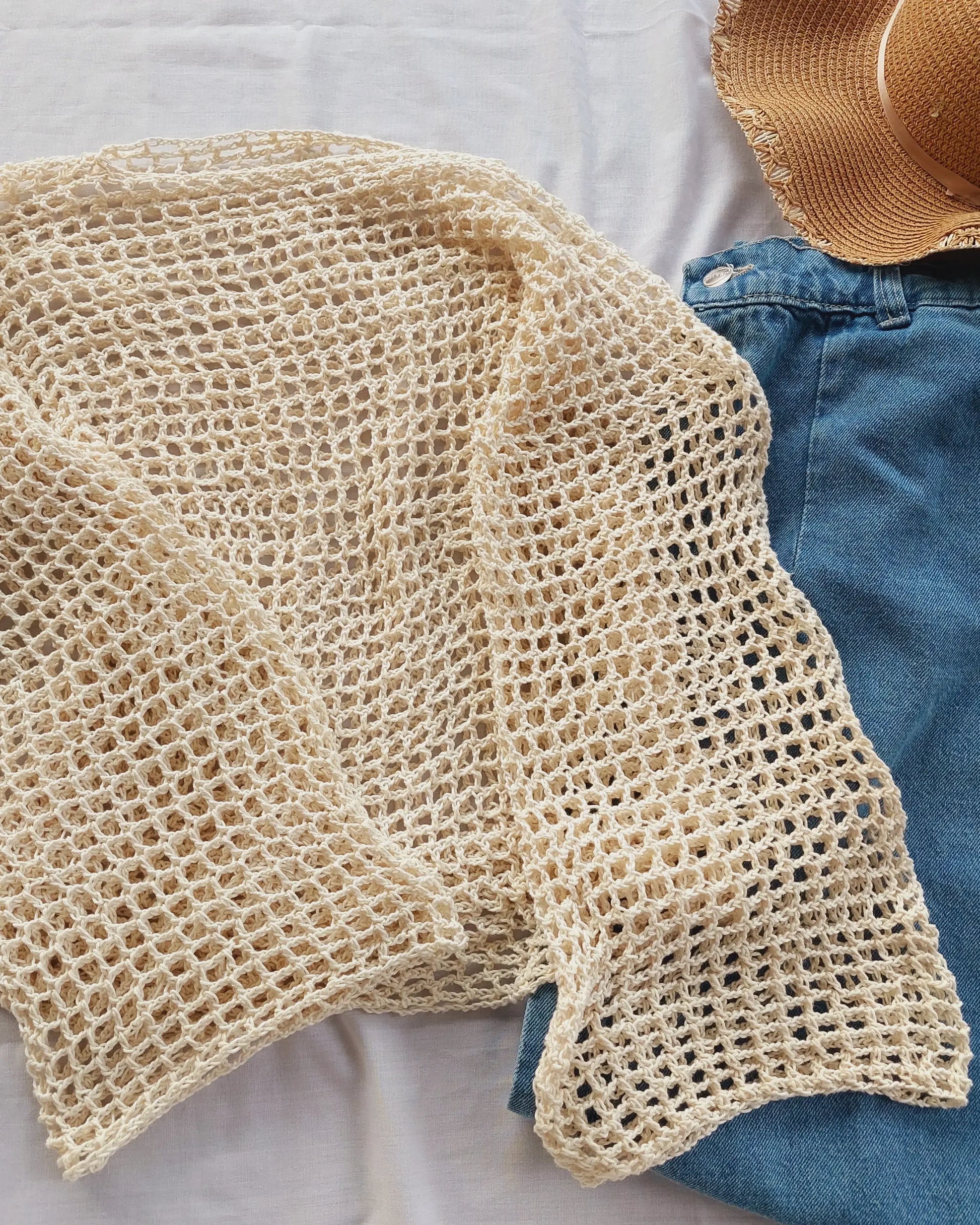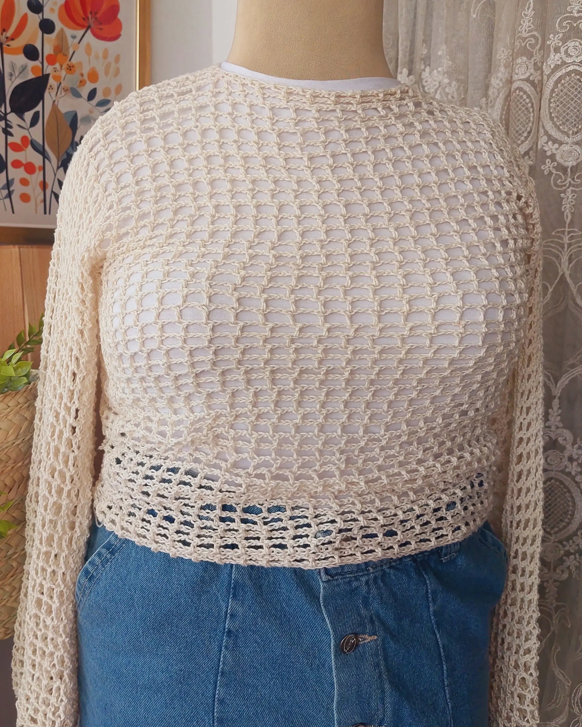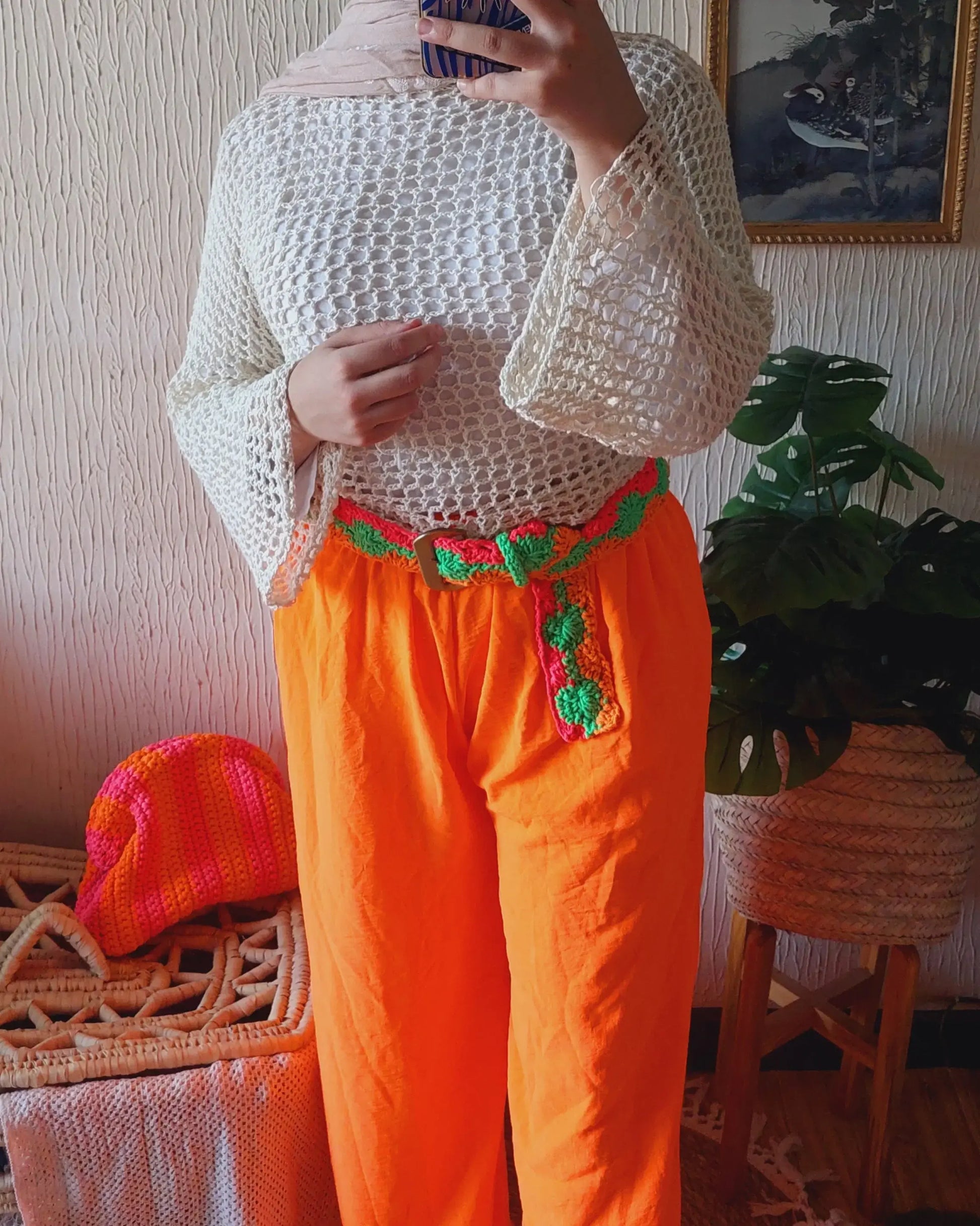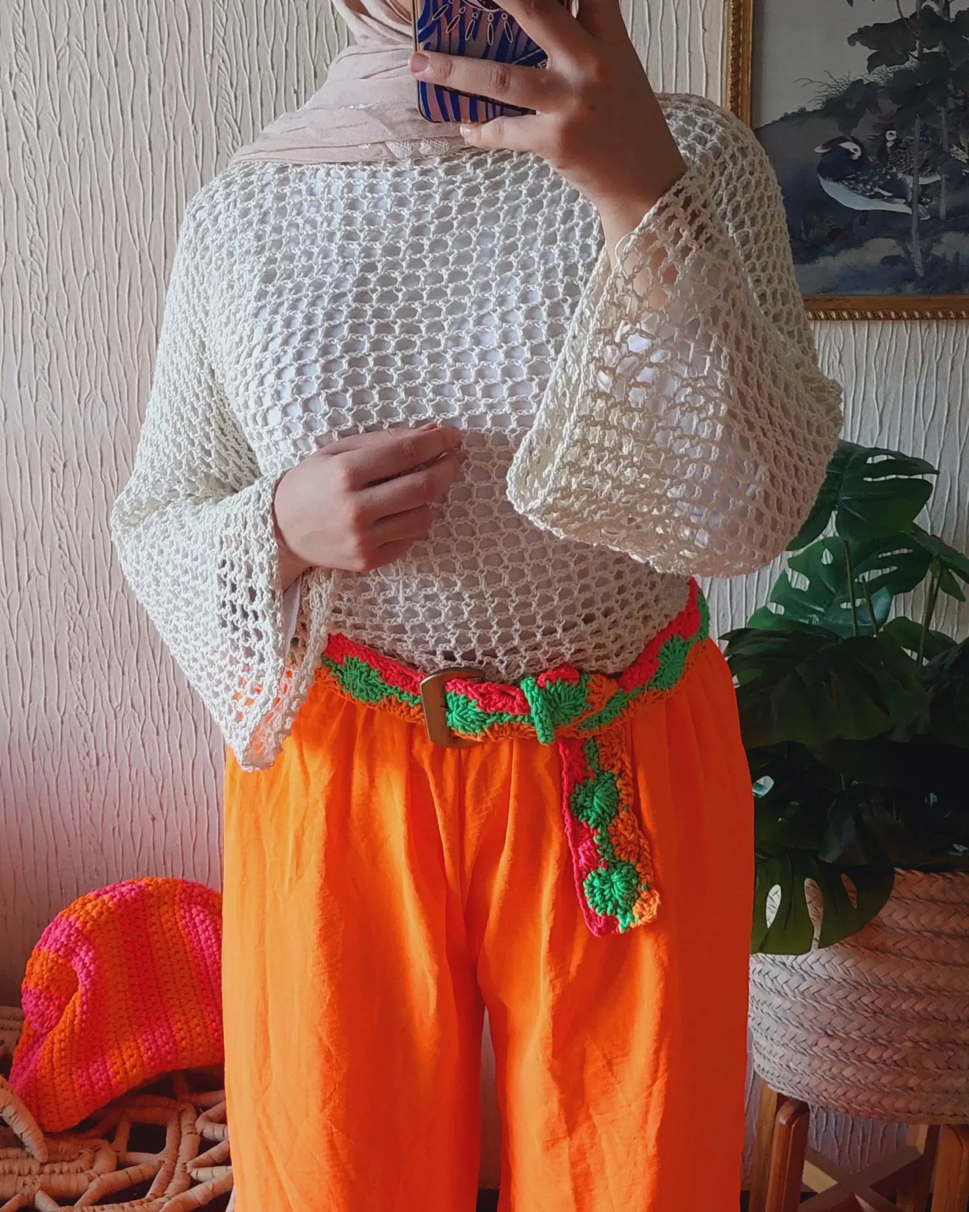 بلوزة كروشيه يدوي ... ستايل صيفي و مبهج ، بلون يليق على أي طقم