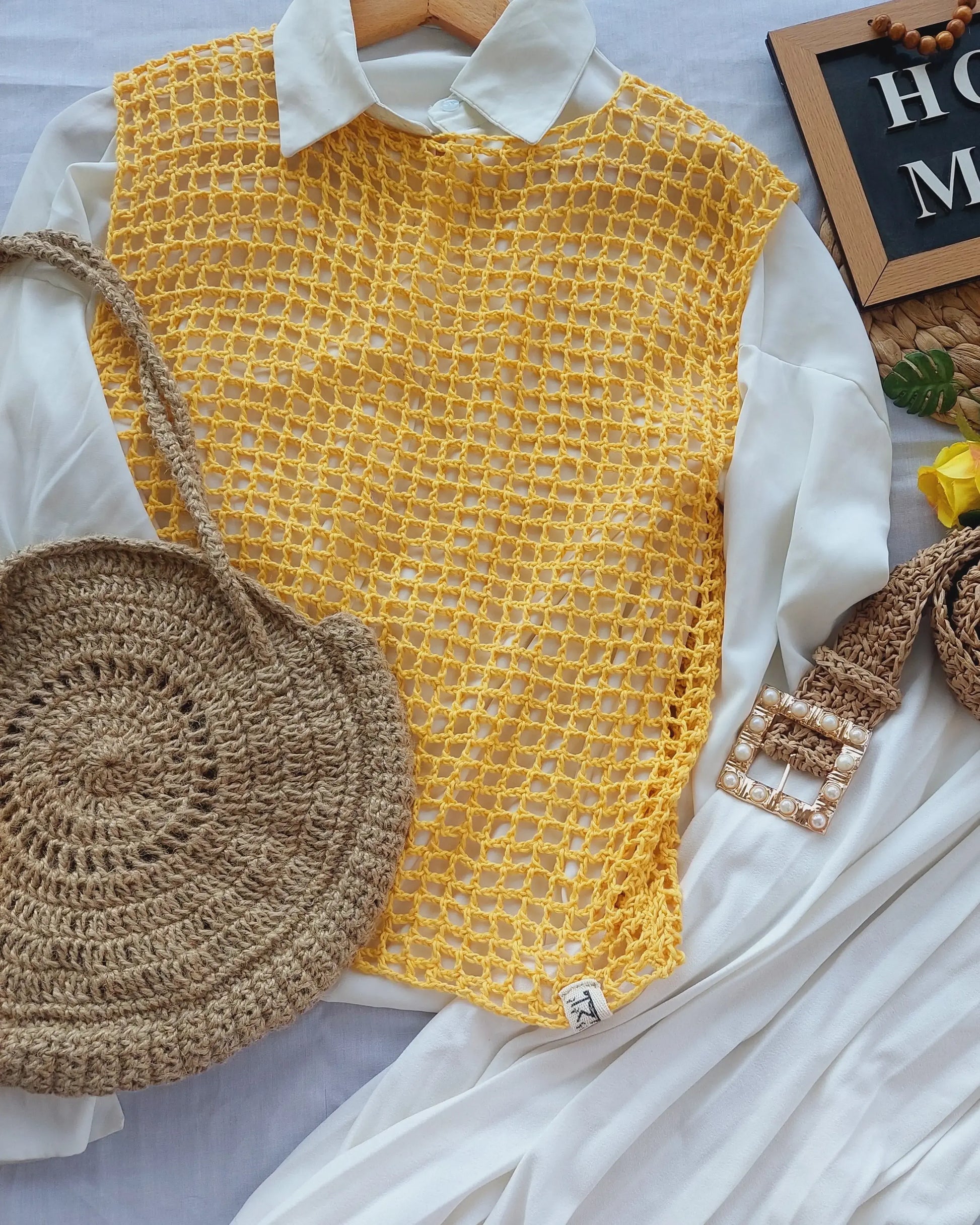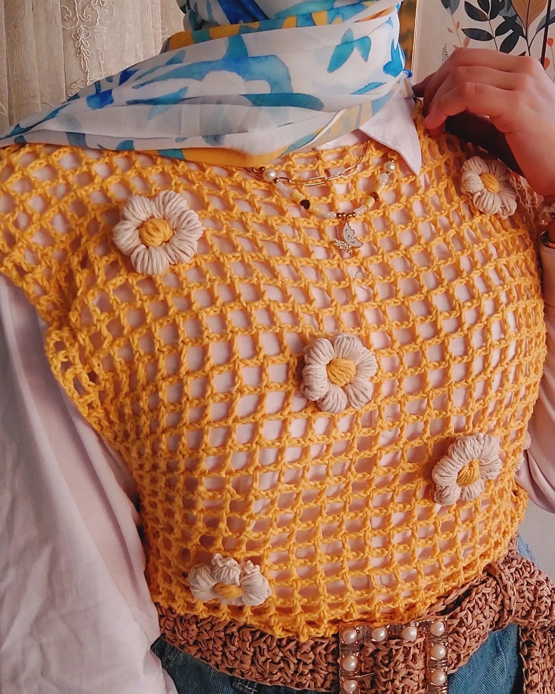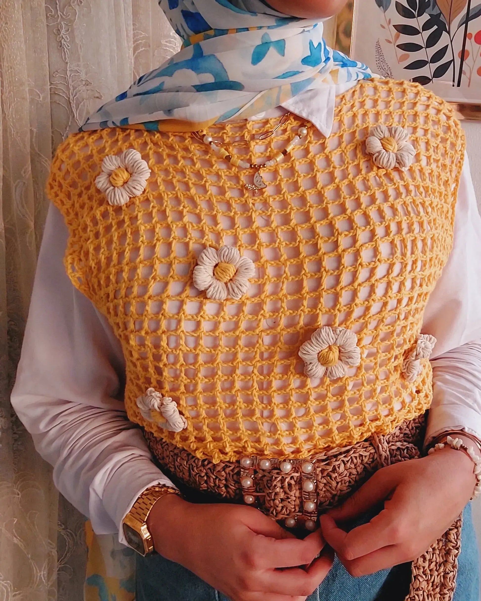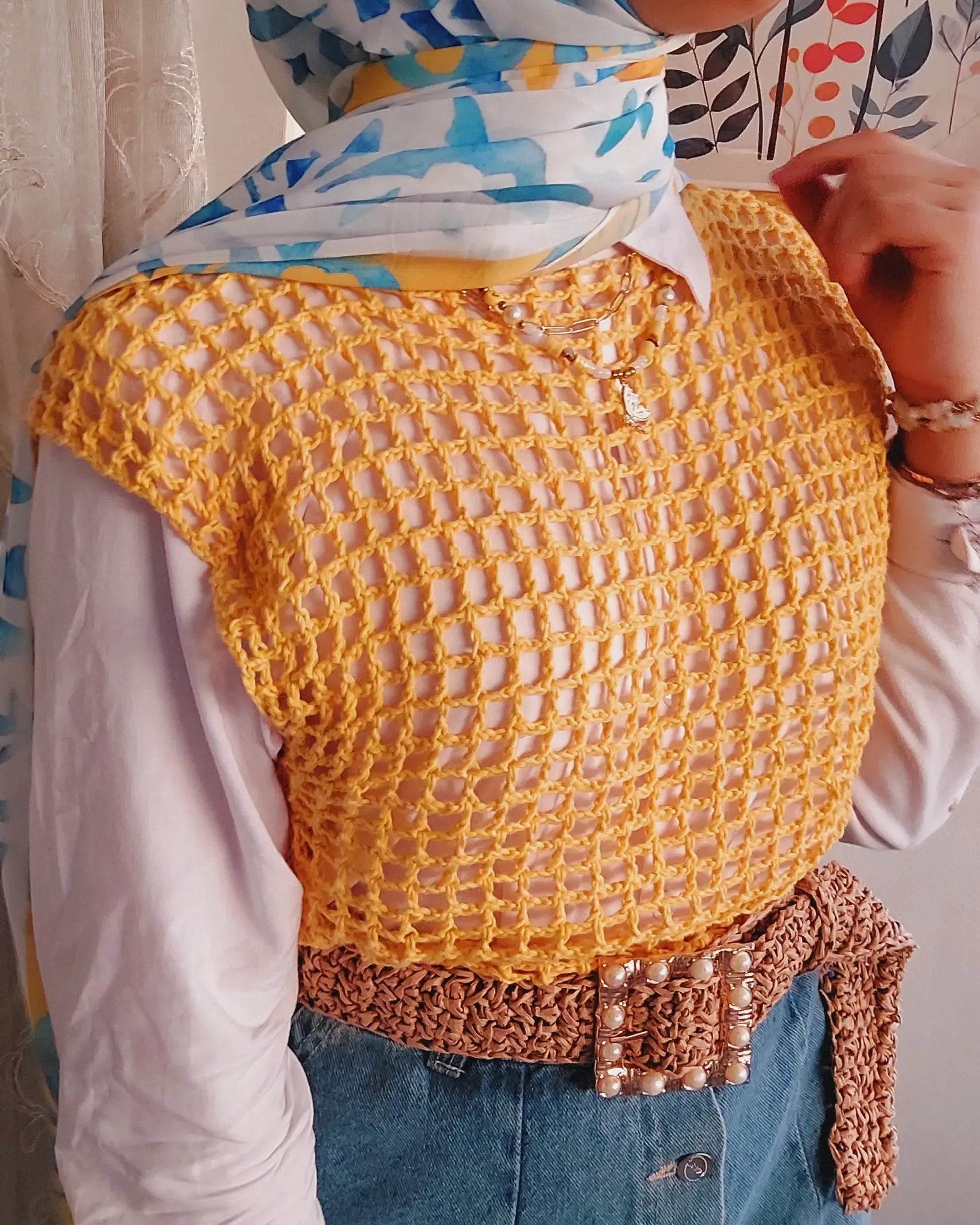 ڤيست كروشيه يدوي ... تصميم بسيط و لون هادي مناسب لأجواء الصيف
