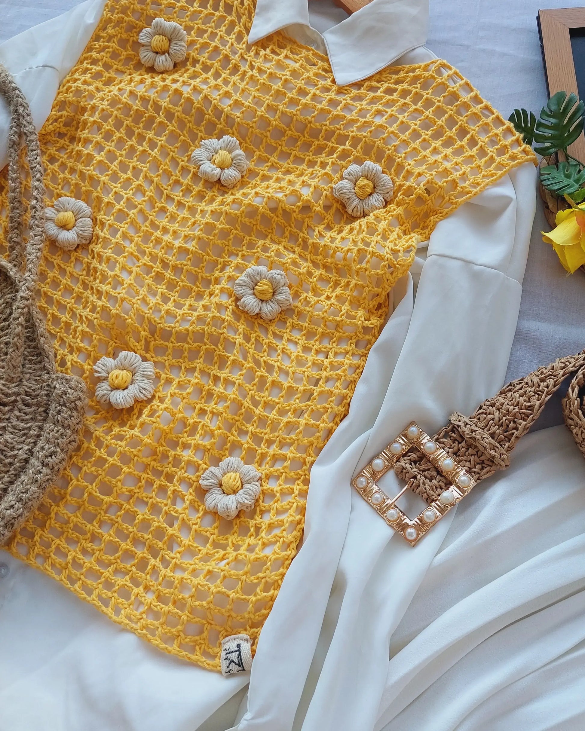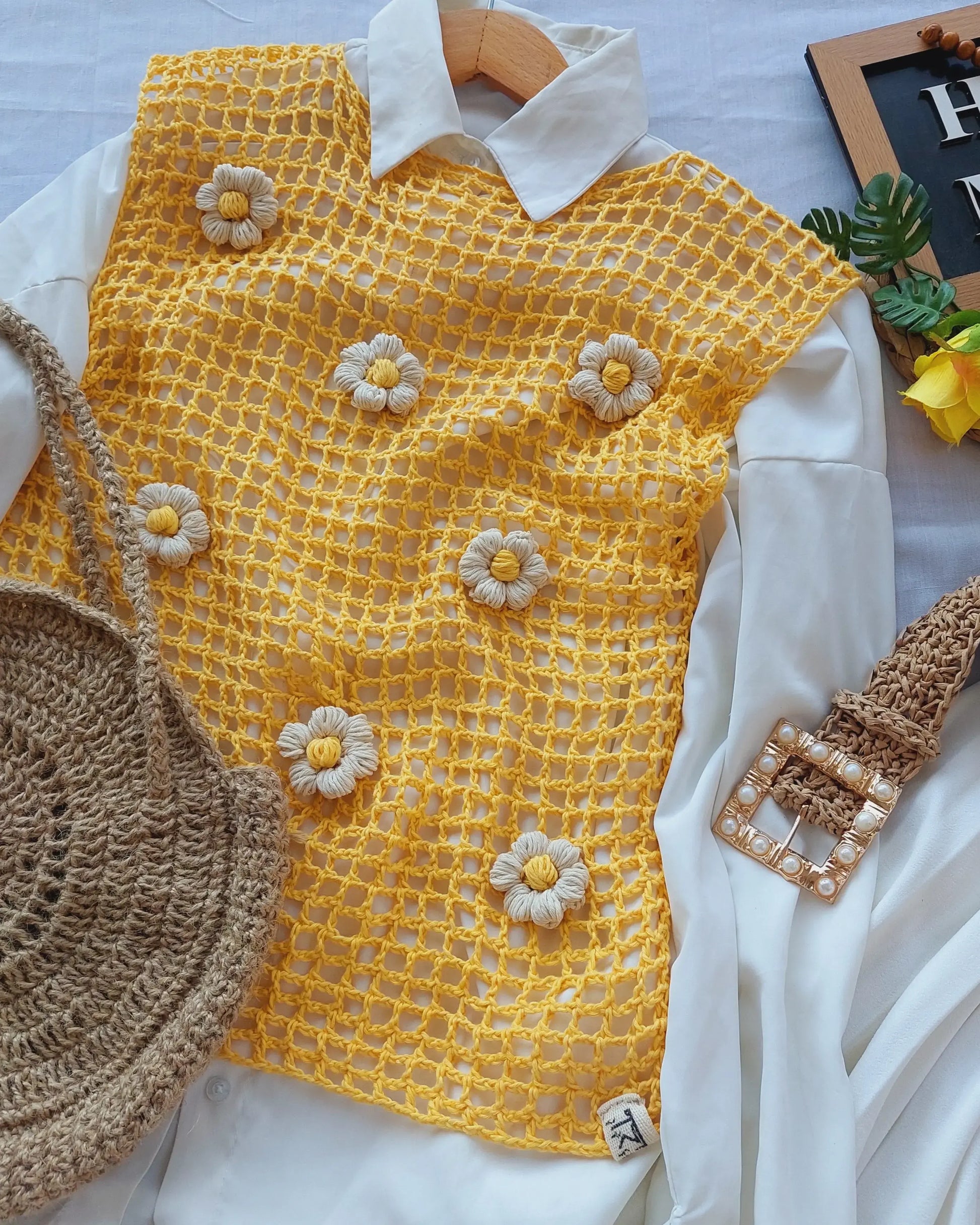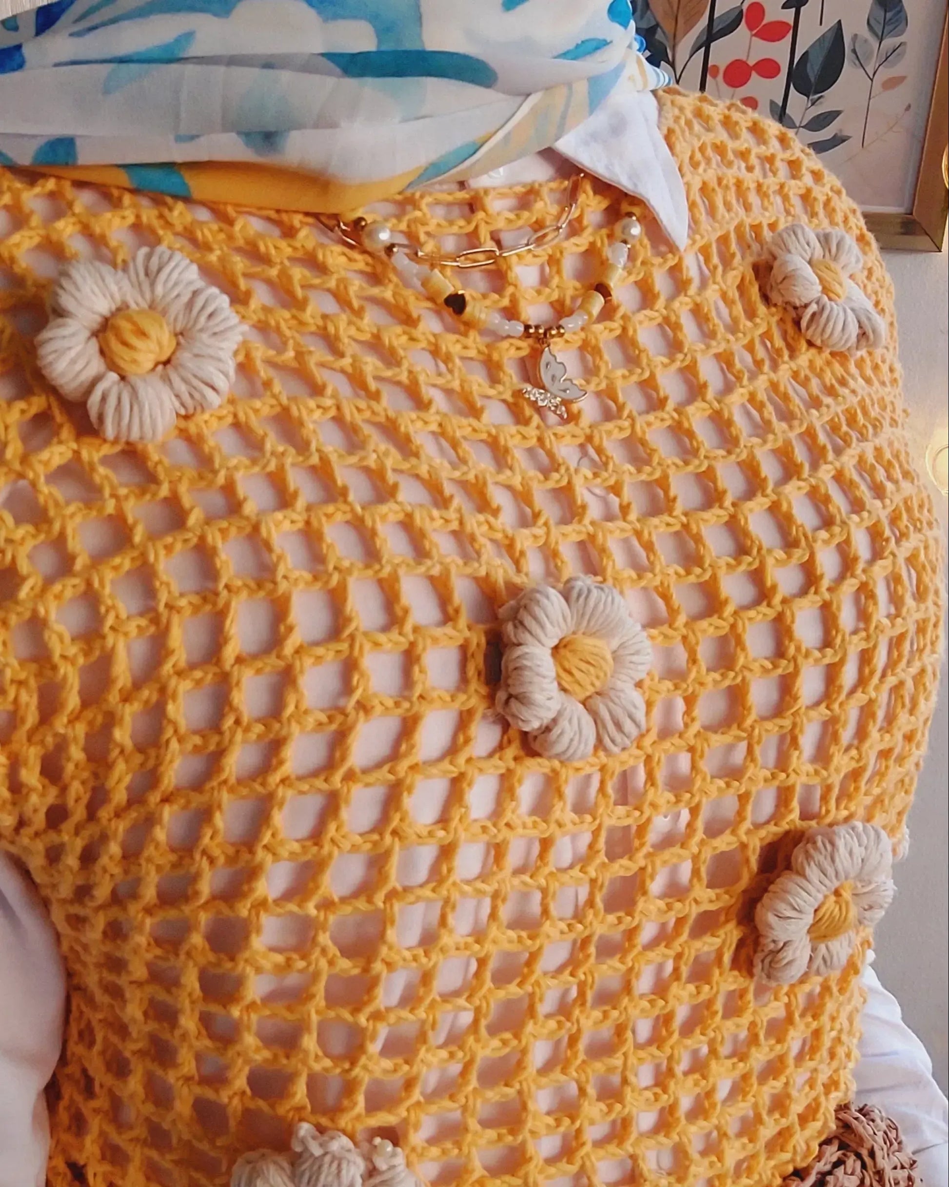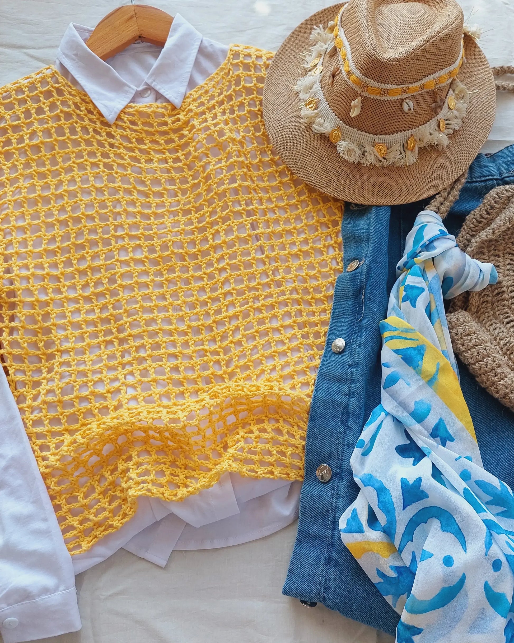 ڤيست كروشيه يدوي ... تصميم بسيط و لون هادي مناسب لأجواء الصيف